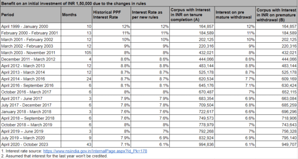 The previous rules were such that if you had to withdraw in, say, the 25th year, i.e., before completion of the tenure of 25 years (initial tenure of 15 years plus 5 years of tenure extended twice), the rate(s) at which you were credited interest from the 15th year onwards, i.e., after initial maturity of the PPF account, would get reduced by 1% each year.