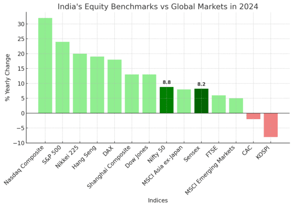 However, in recent years, its growth has shown signs of moderation. In 2024, the Nifty 50 gained just 8.8%, making it one of the weaker performers among global markets due to slowed corporate earnings and foreign fund outflows. 2
